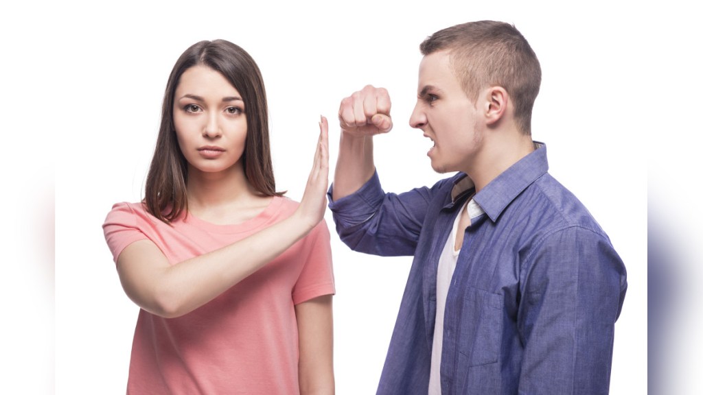 In this photo, you can see that the woman has her hands raised when the man is going to hit her. It is a way of saying stop the violence. It is a way of saying that this woman does not remain silent, and she would have the courage to go and report this man if she mistreats her.This photo is trying to tell women to have the courage to speak up. Do not allow them to give you or not forgive if someone gave you for the first time. I have the strength to get out of that dependency.